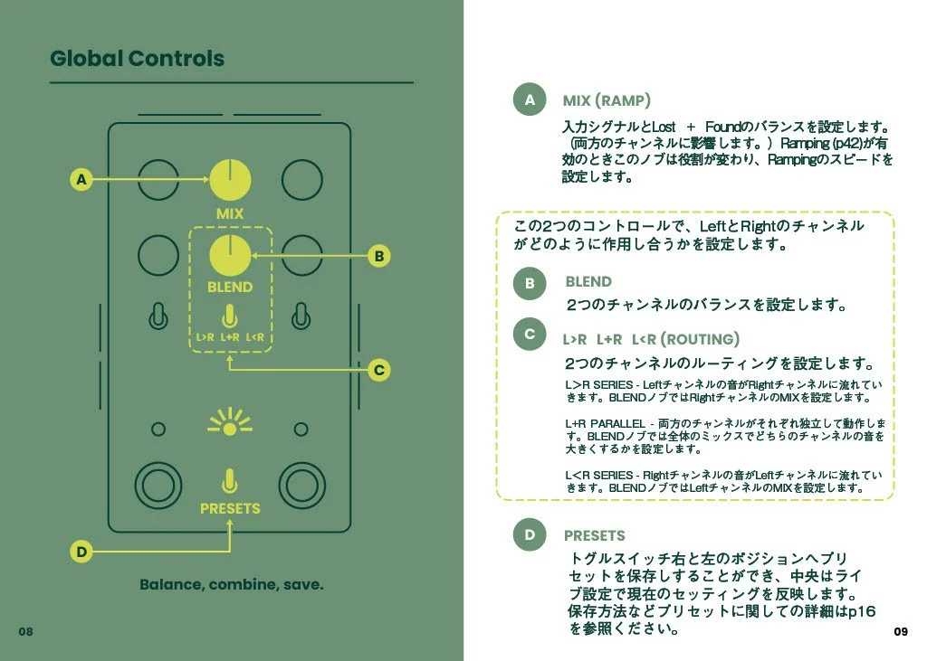Lost + FoundはフルMIDI制御、CV、EXPペダルコントロール、プリセット設定などあらゆるモダンな操作に完全対応。Ramp機能を使えば、Lost + Found自身でノブをモジュレートすることも可能です。