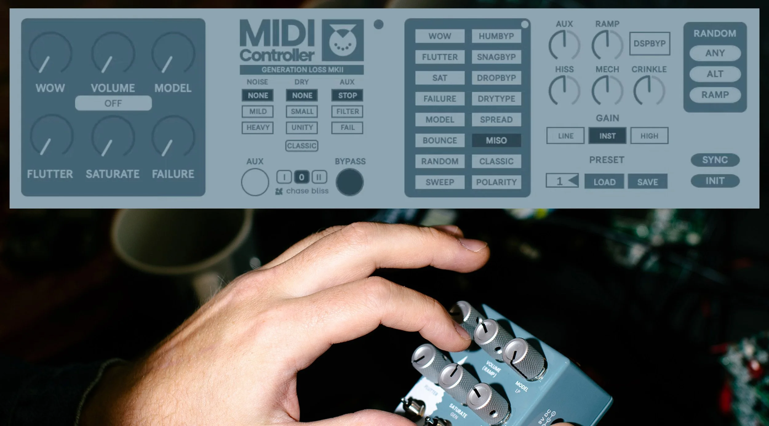 It makes it possible to really integrate one of our pedals in a precise way, like automating a parameter during a transition. It gives you visual feedback for each MIDI change, makes it convenient to save a bunch of presets, etc. You get the convenience of a plugin, but the sound of the Generation Loss.